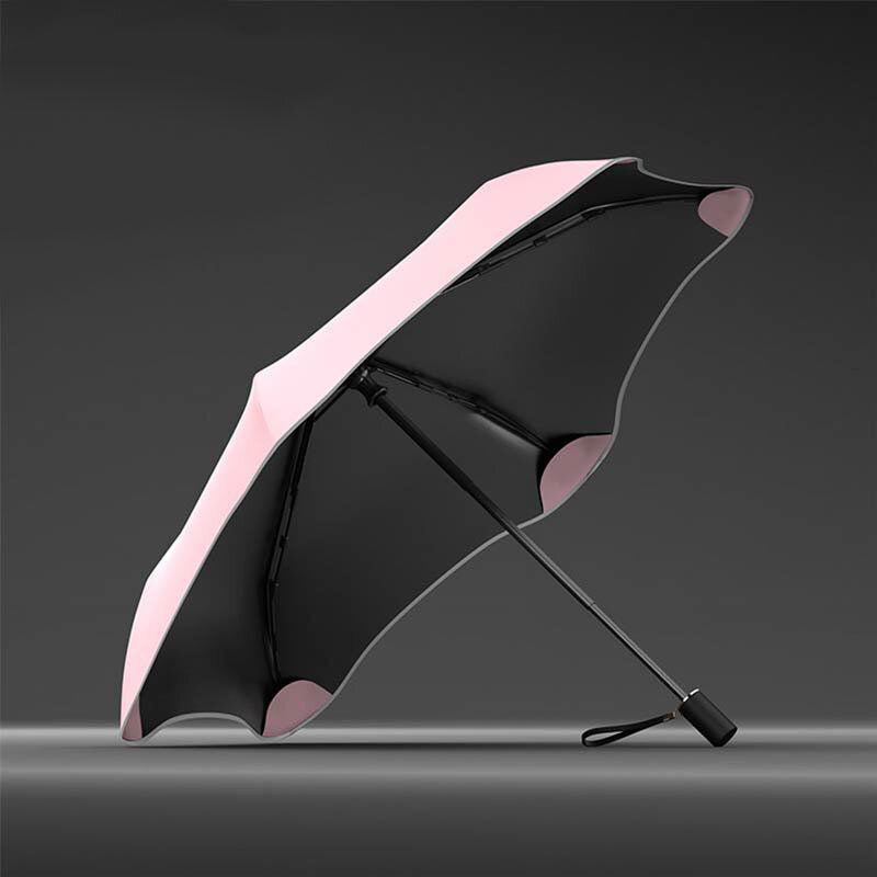 Стильный зонт с особой формой купола, изготовлен из алюминия. Простой надежный механизм раскрывания.
