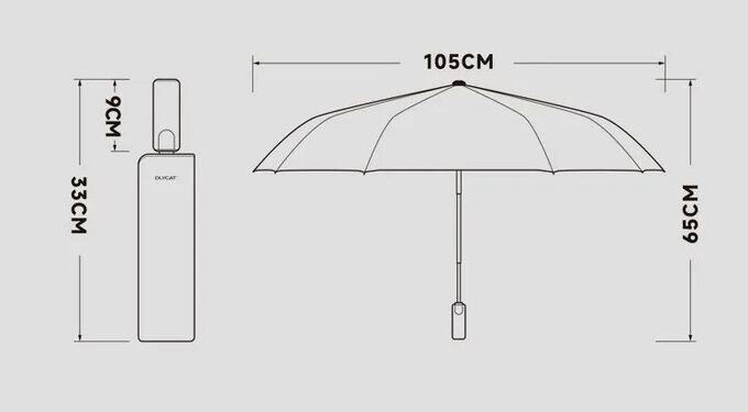 • Довжина складеної парасольки – 33см.