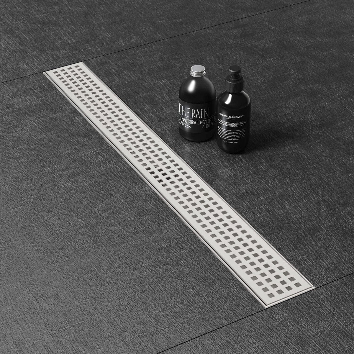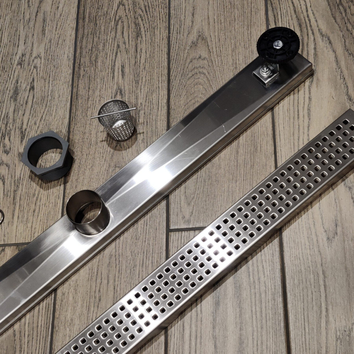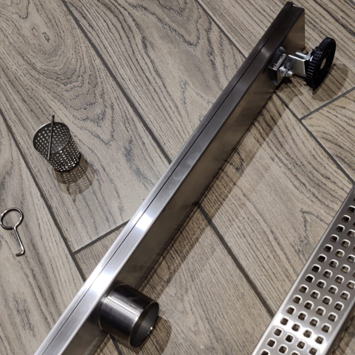 Душовий лінійний трап преміальної якості із товстої нержавіючої сталі марки SUS304. Покриття матове. Вузький та стильний.