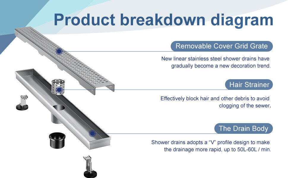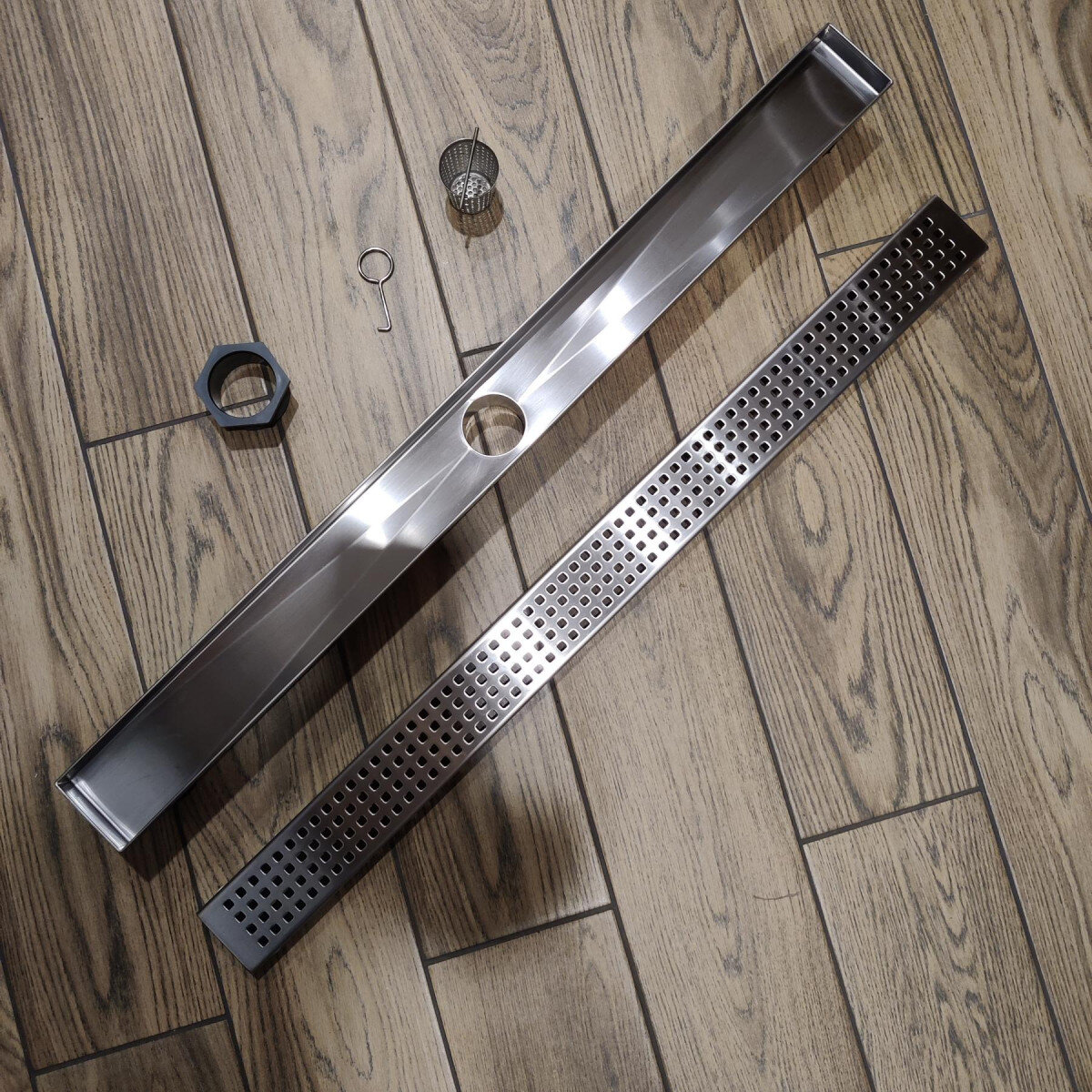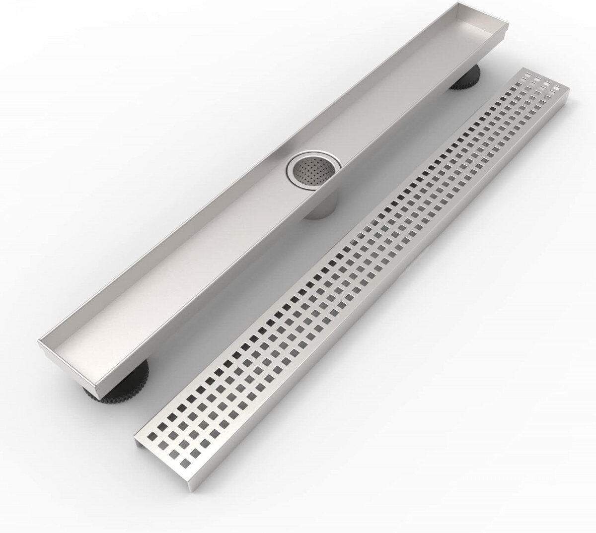 Душовий лінійний трап преміальної якості із товстої нержавіючої сталі марки SUS304. Покриття матове. Вузький та стильний.