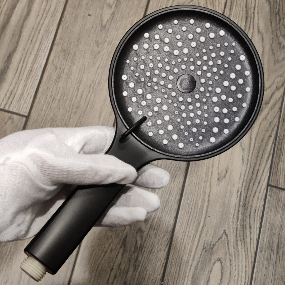 Доступна душова лійка чорного кольору. Якість обробки пластику – бюджетна, сам механізм – надійний.