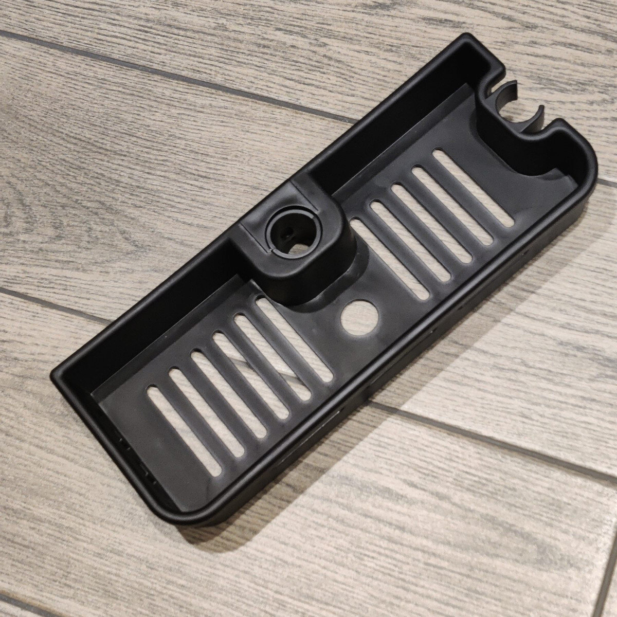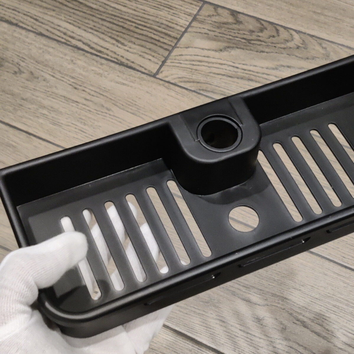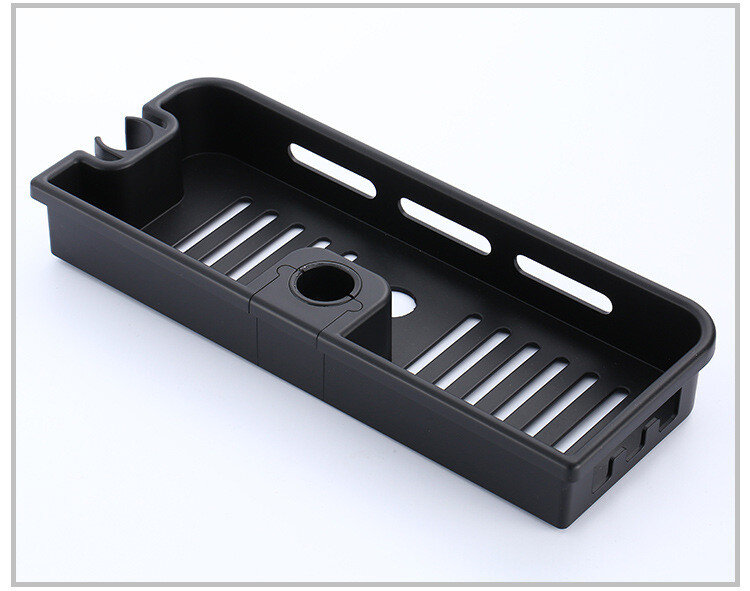 Полиця на душову стійку, виготовлена ​​із пластику. Має гачки та місце для душової лійки. Бюджетна якість, пластик стовщений, не крихкий.