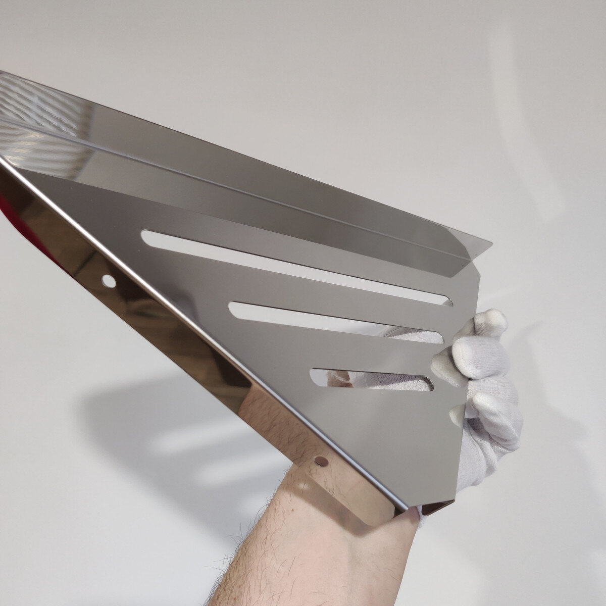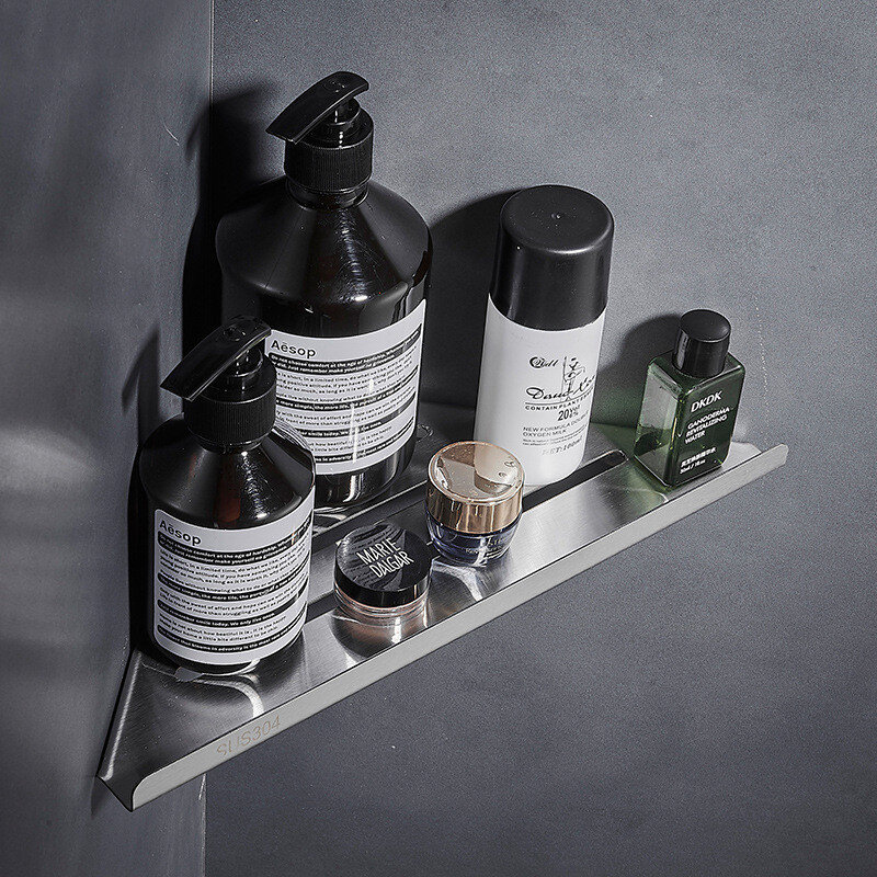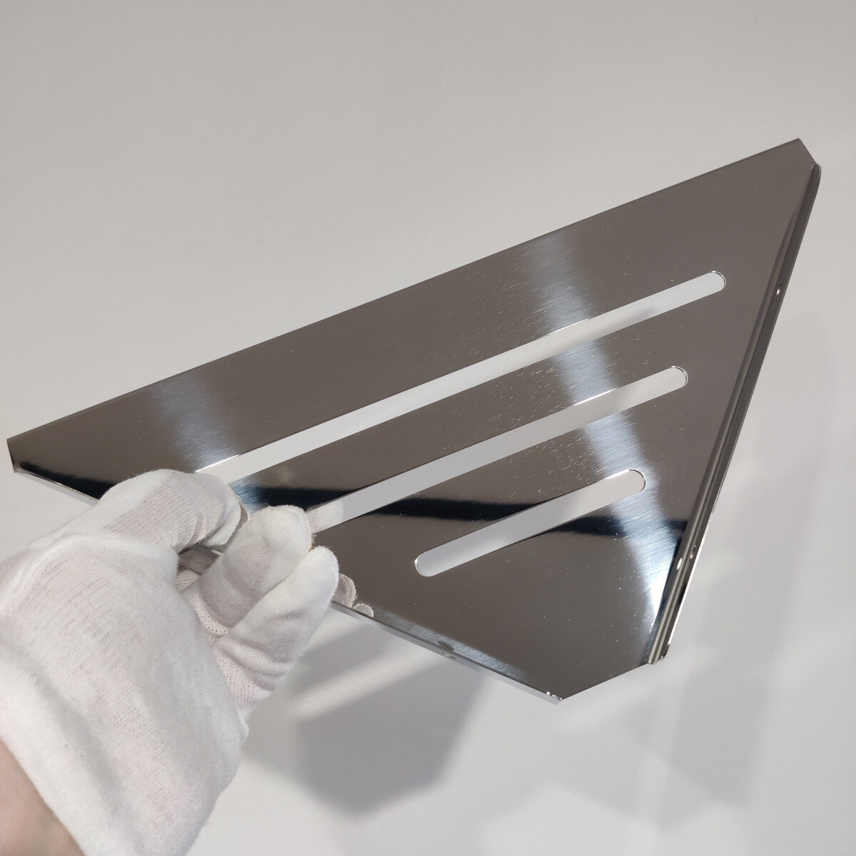 Кутова душова полиця для ванної з цільного листа нержавіючої сталі марки 304. Покриття – глянець (полірування).