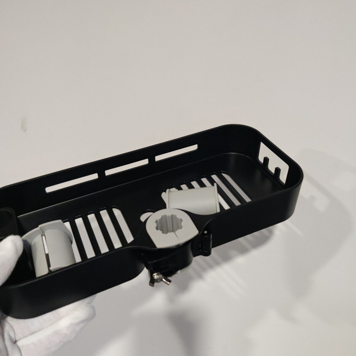 Полиця на душову стійку, виготовлена ​​із пластику. Має гачки та місце для душової лійки.