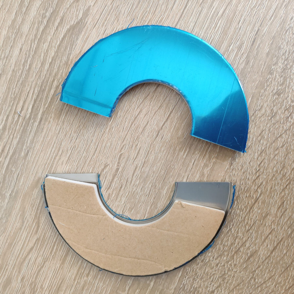 Декоративна накладна чашка із нержавіючої сталі. Складається з двох половинок, що дозволять обійти незнімні труби. Товщина 5 мм. Кріплення – липка 2-х стороння стрічка (у комплекті).