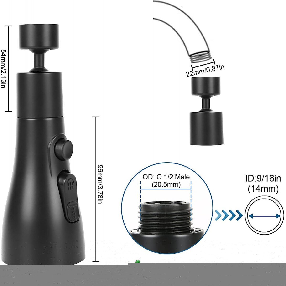 | Дополнительные характеристики | Для кухонных смесителей Возможность установки произвольной формы Изменяемый радиус действия излива Аэратор-лейка с 3-мя режимами струи |