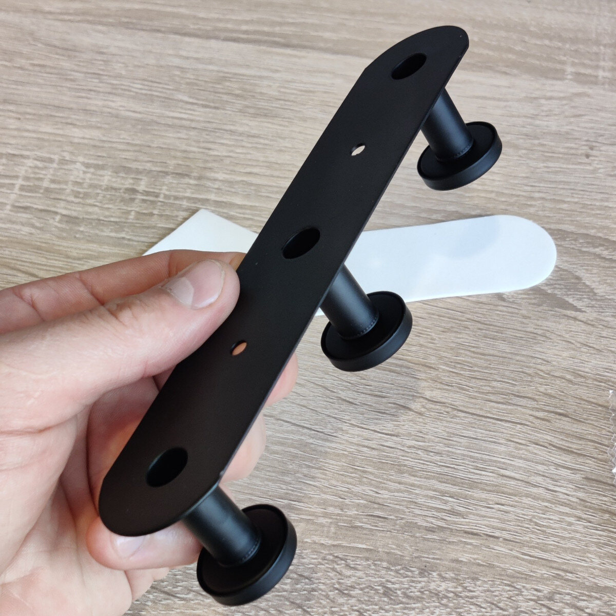 Вішалка із нержавіючої сталі. Кріпиться шурупами або двома стороннім скотчем.