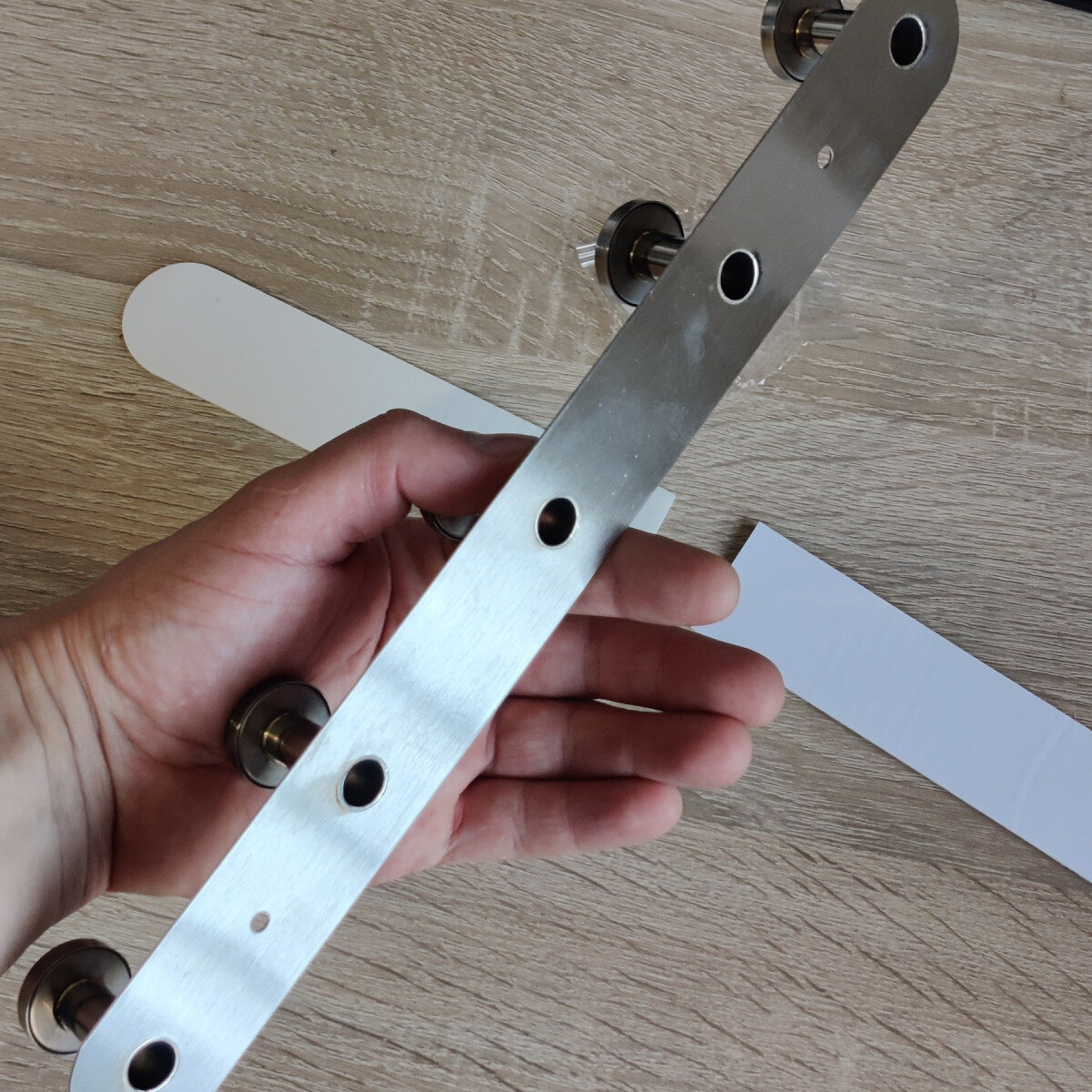 Вішалка із нержавіючої сталі. Кріпиться шурупами або двома стороннім скотчем.
