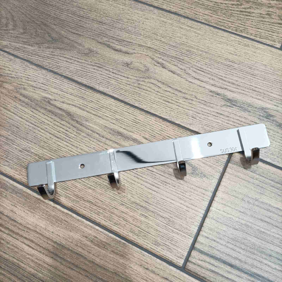 Вішалка із нержавіючої сталі. Виготовлена з товстого матеріалу, не гнеться. Колір – хром. Кріпиться шурупами.