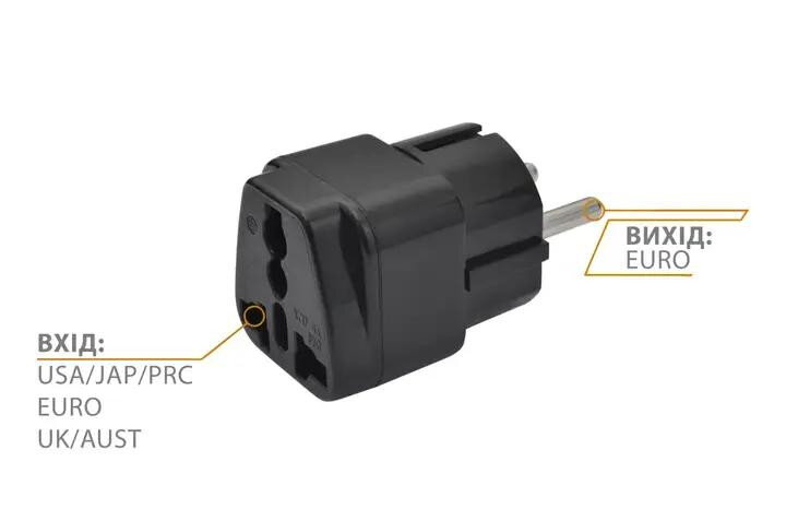 Універсальний компактний перехідник з американської / англійської / австралійської вилки на європейську із заземленням.