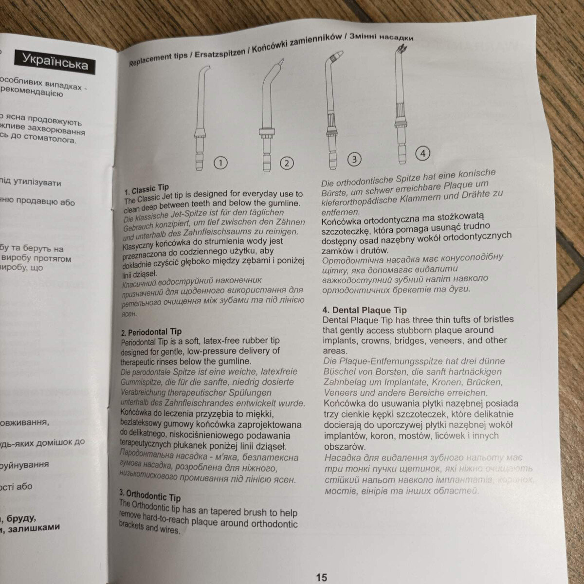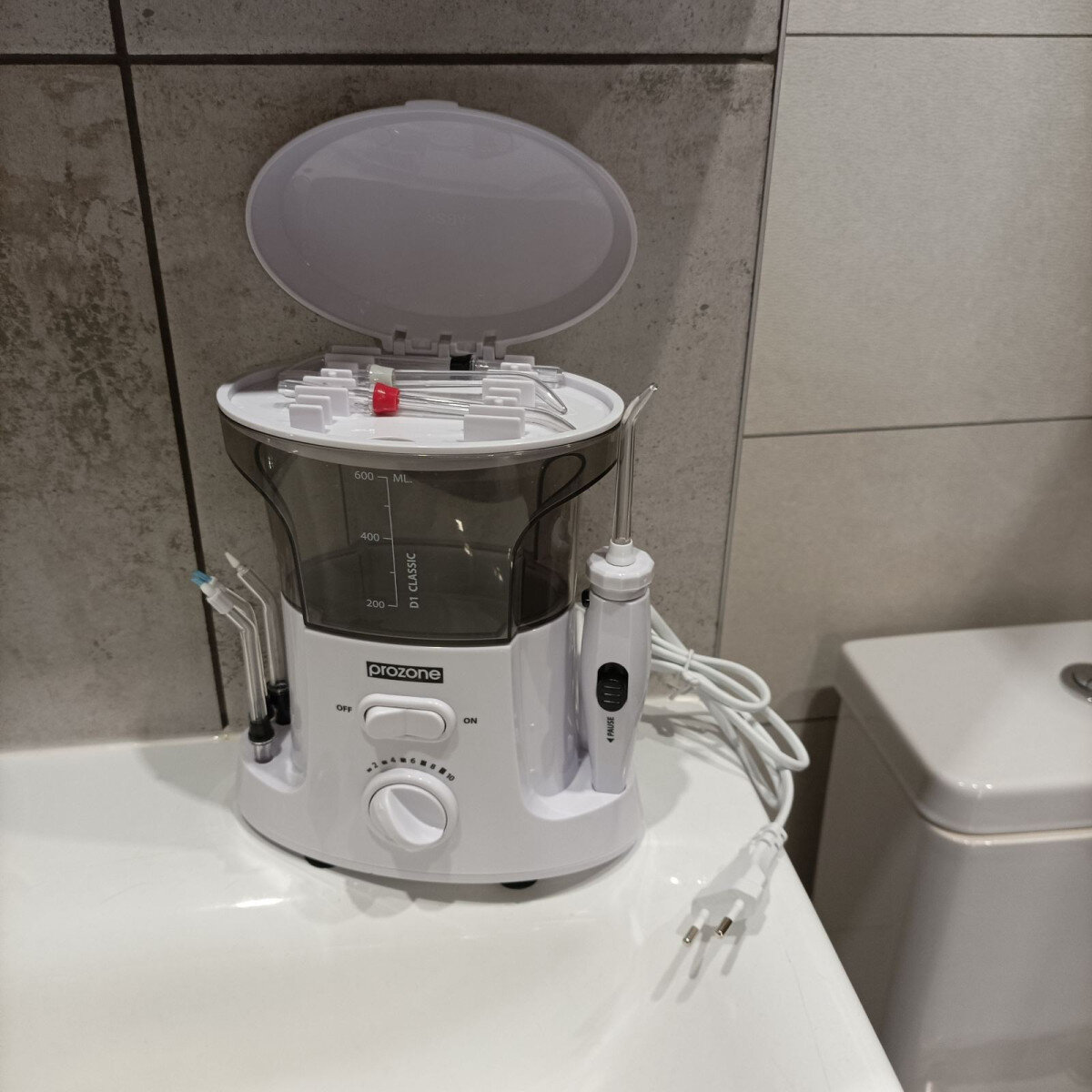 - Тримач 3-х насадок на корпусі приладу - Вам не потрібно постійно шукати заховані насадки, а після процедури іригації сушити їх перед тим, як сховати.