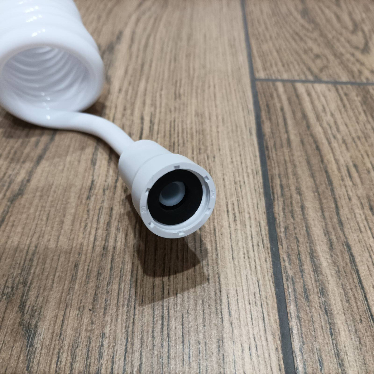 Шланг для гігієнічного душу (бідетти) спіральної форми. Не займає багато місця, після витягування повертається до попереднього положення. Гайки підключення на 1/2 дюйми, виготовлені зі спеціального пластику. Є ущільнюючі прокладки.