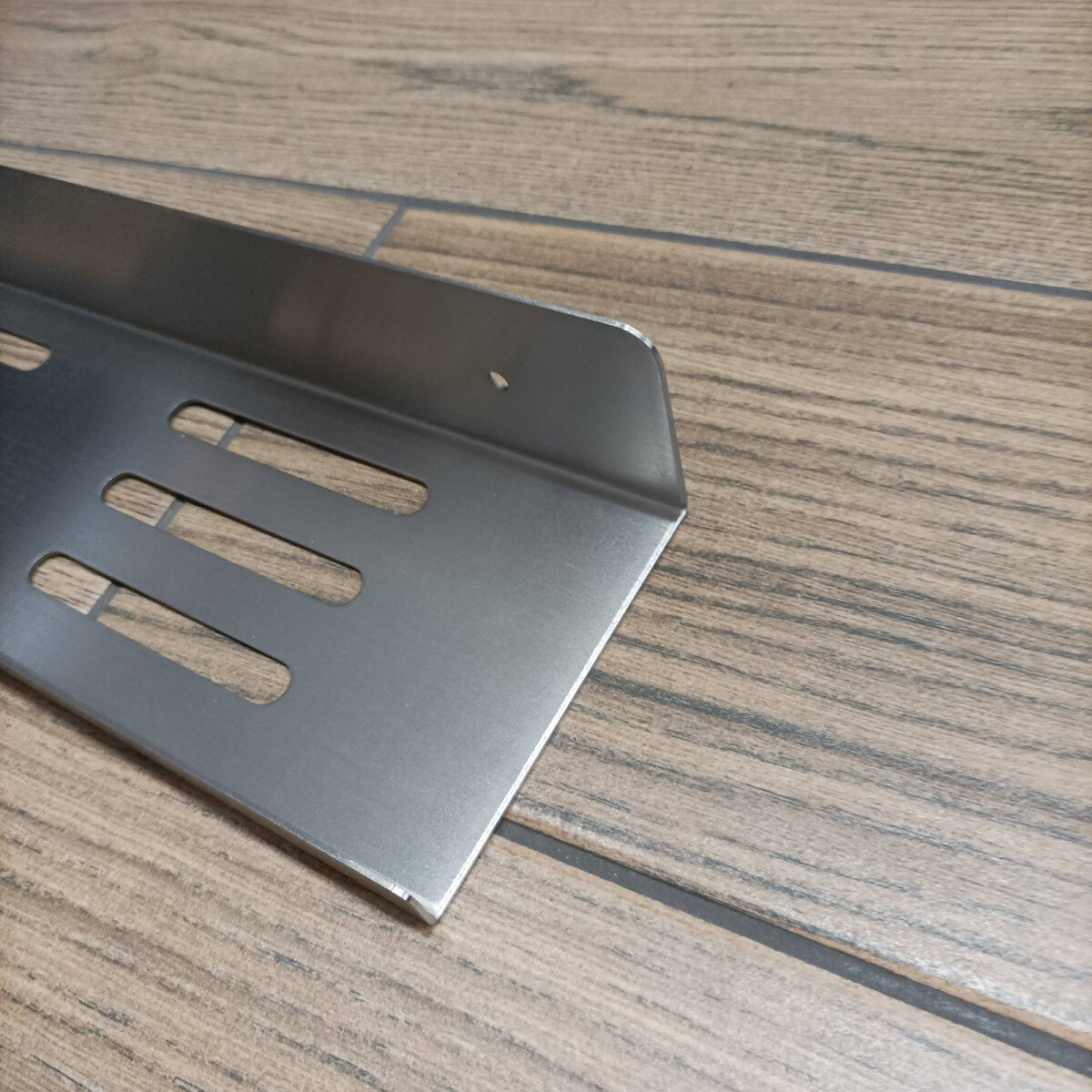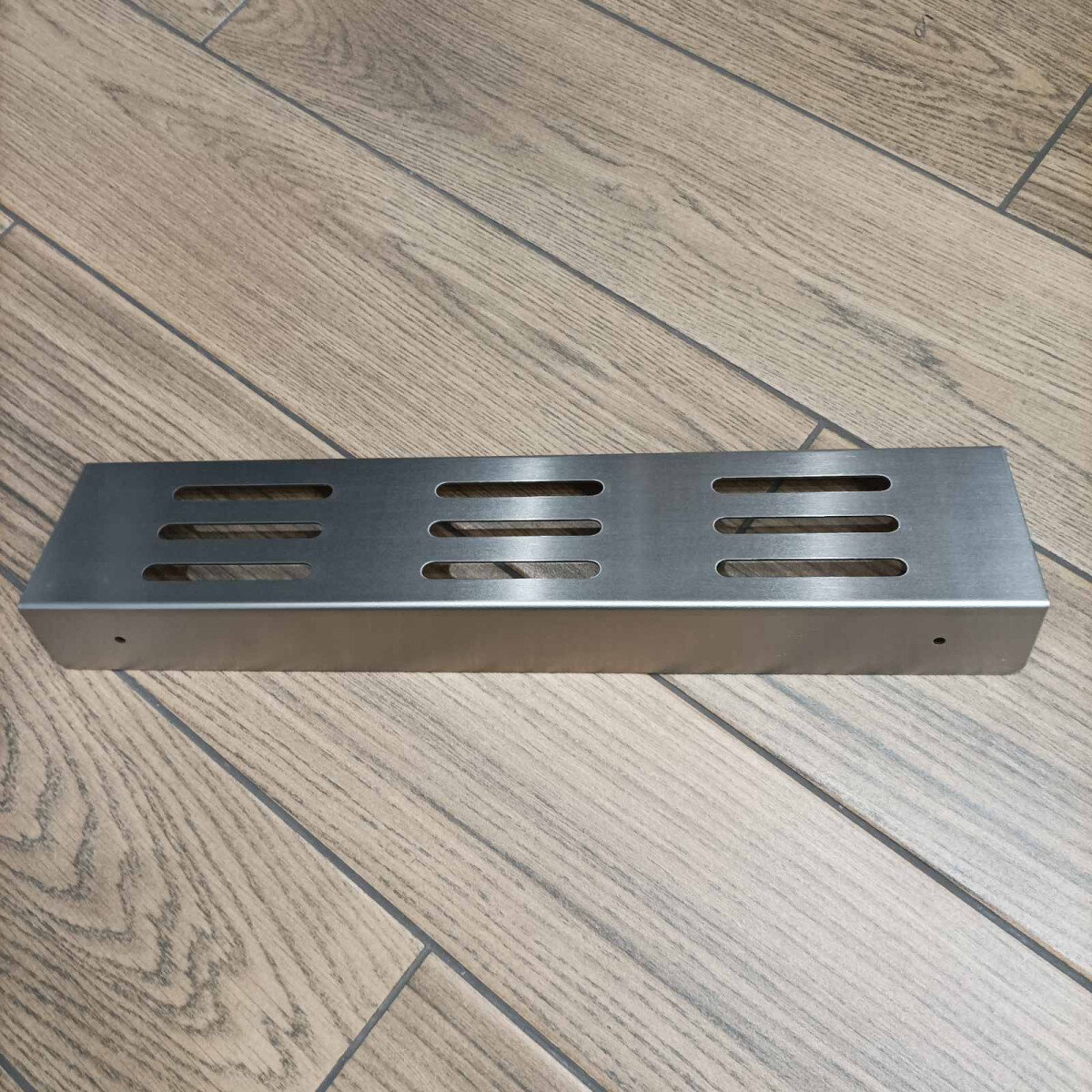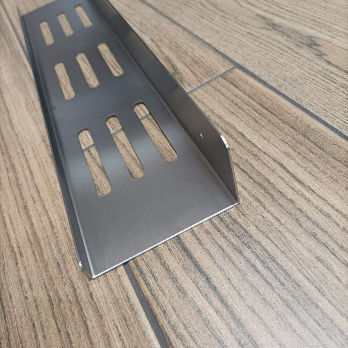 Полиця виготовлена з цільної товстостінної нержавіючої сталі (1.5 мм) — удвічі товстішої, ніж у стандартних моделей. Вона легко витримує навантаження та щоденне використання без втрати форми чи зовнішнього вигляду. Матовий фініш надає поверхні глибини й стриманого блиску, не залишаючи слідів пальців.