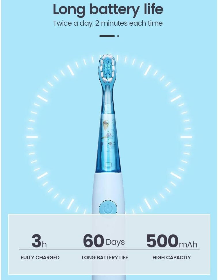 Частота вібрації досягає 31 000 рухів за хвилину (залежно від режиму) – оптимально для ефективного, але делікатного очищення дитячих зубів.