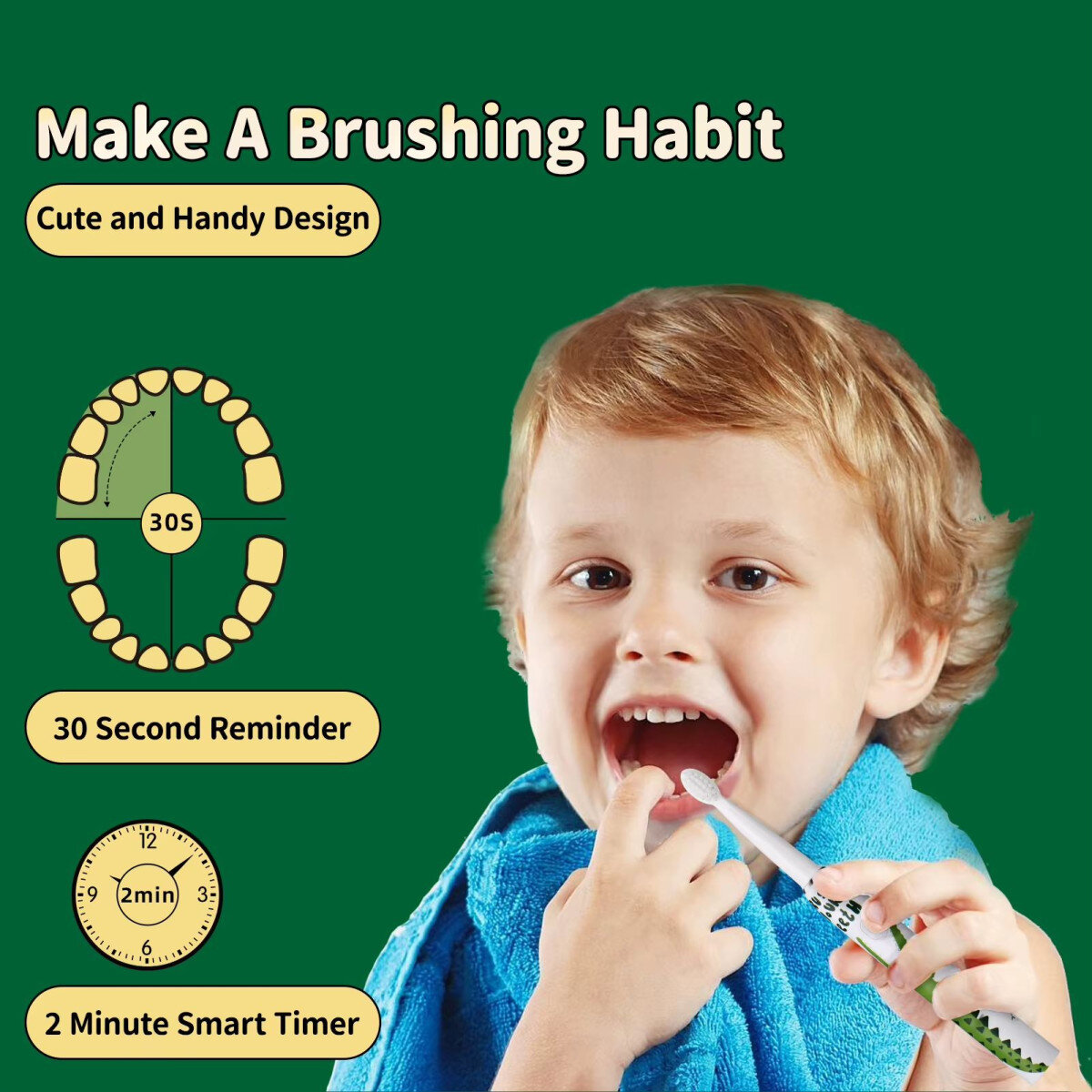 Дитяча електрична щітка із вбудованим акумулятором призначена для підлітків та дітей від 3-х років.