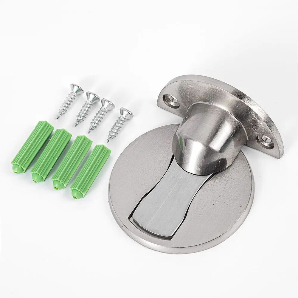 Магнітний обмежувач/стопер дверей з нержавіючої сталі — надійна фіксація без свердління полотна та підлоги (лише отвори кріплення)