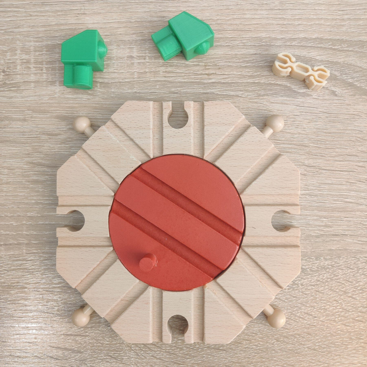 Набір деталей до дерев'яної залізниці.