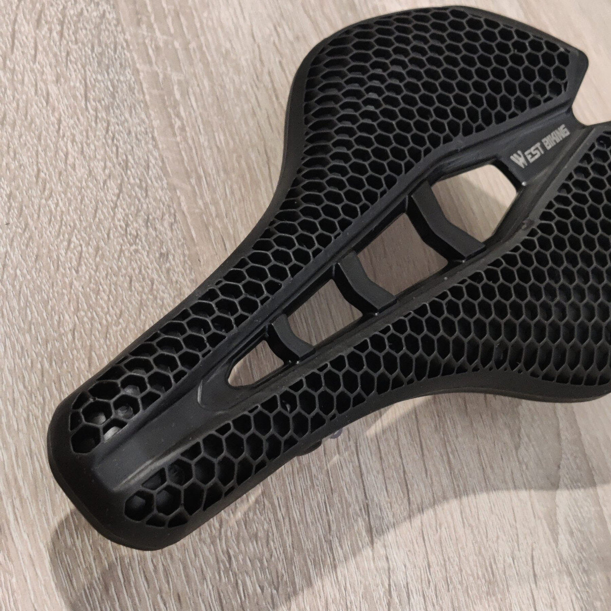 Сучасне велосипедне сідло зі стільниковою 3D-структурою забезпечує комфорт під час тривалих поїздок. Поверхня виконана у вигляді об'ємної комірчастої сітки, яка покращує вентиляцію, зменшує нагрівання та допомагає рівномірно розподіляти навантаження.