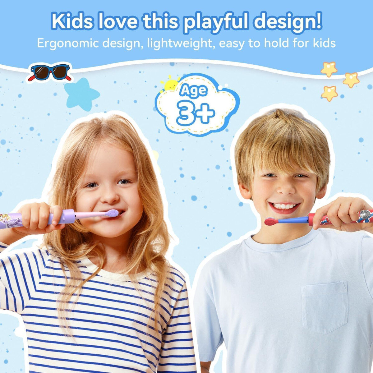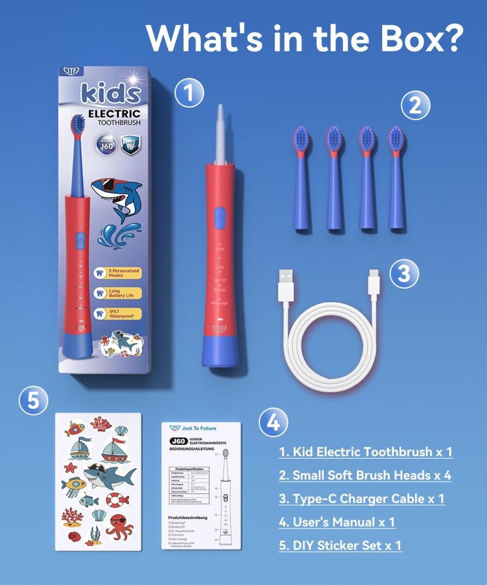 Щітка має яскравий дизайн і комплект декоративних наклейок, що дозволяє дитині персоналізувати пристрій. Це підвищує зацікавленість та робить процес чищення зубів більш приємним і регулярним. :contentReference[oaicite:5]{index=5}