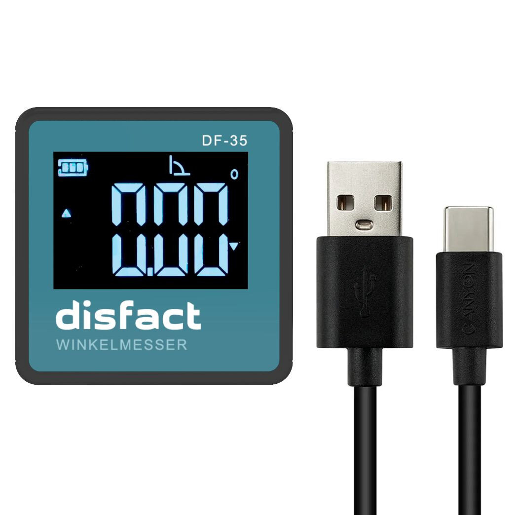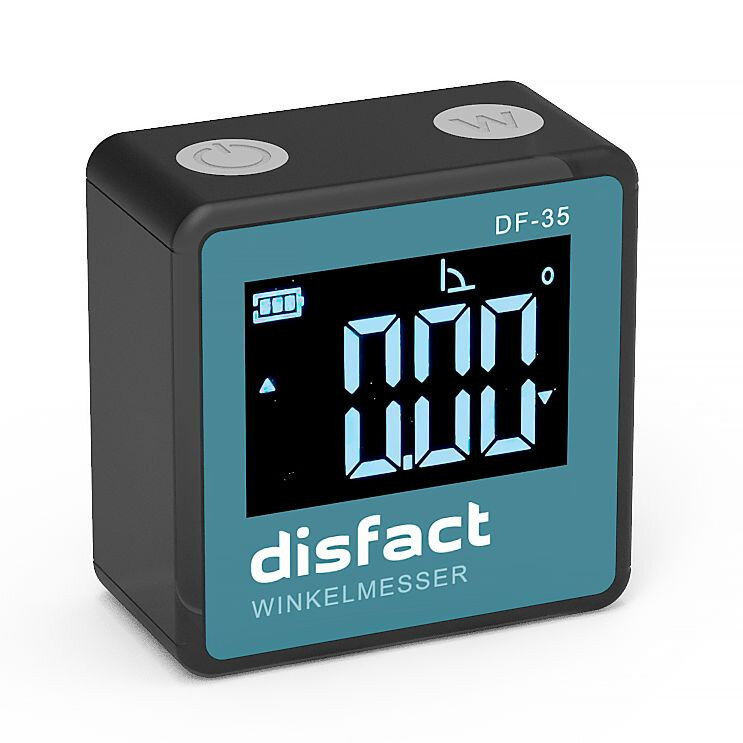 Disfact DF 35 — це компактний цифровий кутомір для точного контролю кута нахилу під час роботи з інструментом, обладнанням, меблями та побутовою технікою. Завдяки мініатюрному корпусу розміром усього 36 х 36 х 19.5 мм прилад зручно використовувати там, де звичайний великий кутомір заважає, перекриває огляд або створює зайве навантаження на робочу поверхню.