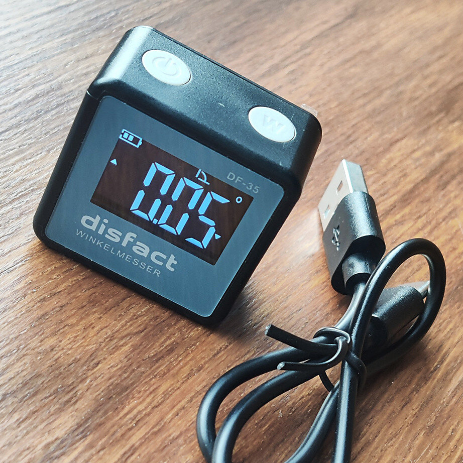 Disfact DF 35 підтримує абсолютний та відносний режим вимірювання. Абсолютний режим зручний для перевірки нахилу відносно горизонту, а відносний режим дозволяє обнулити показник на потрібній базовій площині та далі контролювати відхилення саме від неї. Це корисно під час точного налаштування кута заточування, вирівнювання деталей, регулювання обладнання або монтажу меблевих елементів.